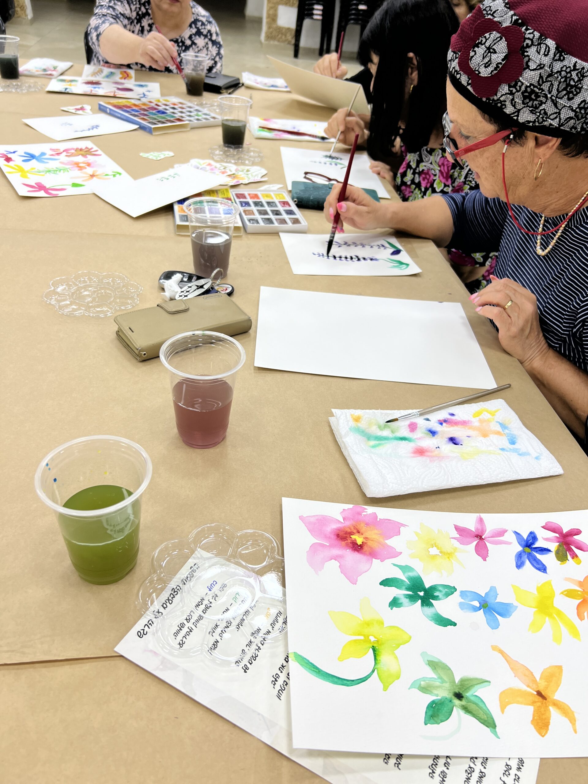אני מגיעה אלייך עד הבית עם כל מה שצריך : צבעי מים, מכחולים, השראה – ואת רק צריכה לפתוח את הלב ליצירה.