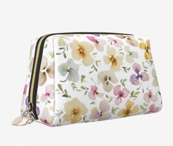 תיק איפור דמוי עור עם הדפס ציור מקורי – אלגנטי ופרקטי, כולל תאים חוצצים פנימיים לשמירה על סדר ונוחות יומיומית.