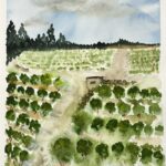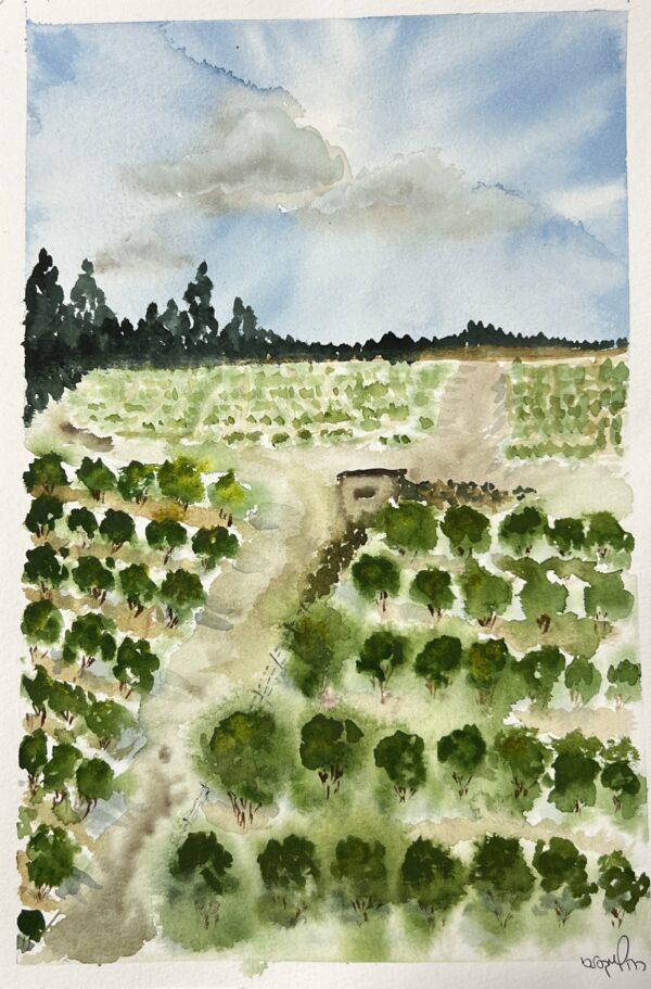 ציור מקורי נוף של מטעי הגליל המערבי בצבעי מים גודל A4
