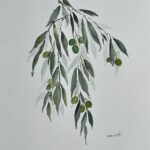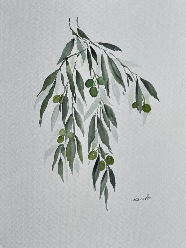 ציור מקורי בצבעי מים " ענף זית" גודל A3 לא ממוסגר.